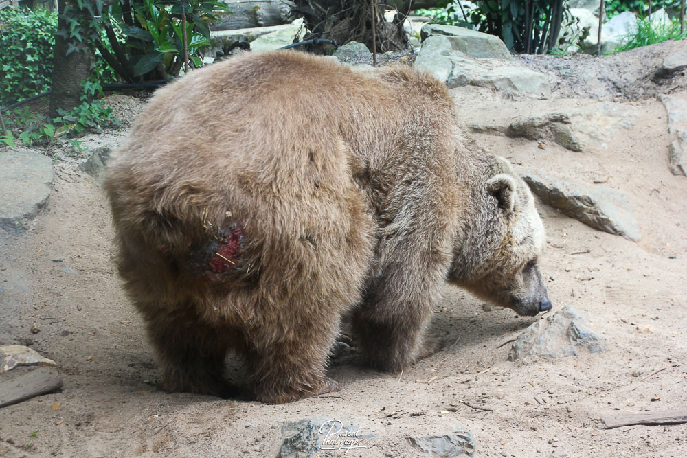 C'est un très gros ours brun, le plus gros d'Eurasie, d'une longueur de 2,4 à 3 m dressé sur ses pattes arrière, et pesant jusqu'à au moins 650 kg[1]. Sa taille se rapproche de celle de l'ours Kodiak ; cependant, le crâne est plus large que celui de Ursus arctos lasiotus, et par rapport à celui de l'ours Kodiak, le crâne est beaucoup plus large que long, l'ouverture des narines antérieures est beaucoup plus courte et les molaires diffèrent par leur taille et leur forme relatives. Le crâne le plus long pour un mâle est de 40,3 à 43,6 cm, large de 25,8 à 27,7 cm, tandis que les crânes des femelles font 37,2-38,6 cm de long et 21,6-24,2 cm de large. La fourrure est généralement brun foncé avec quelques teintes violettes. Les individus de couleur claire sont rares.
