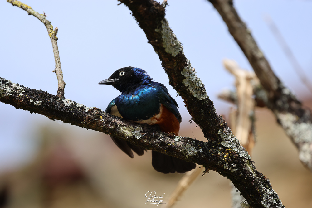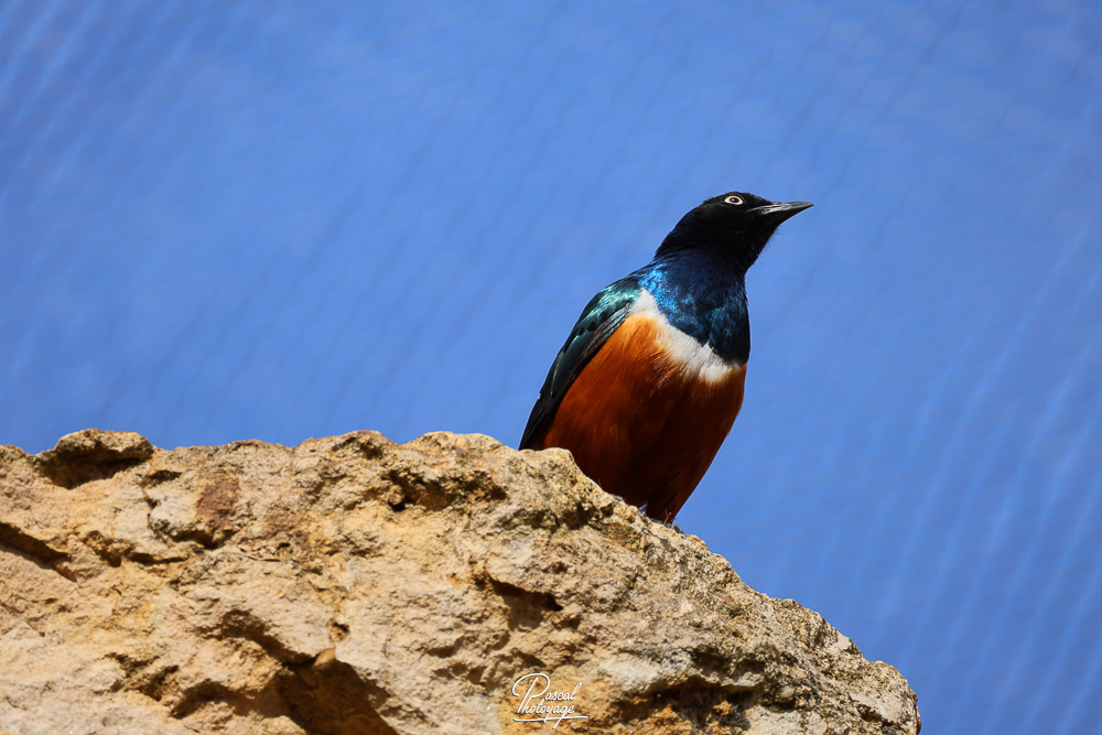 Le Choucador superbe ou Spréo superbe (Lamprotornis superbus) est une espèce d'oiseaux de la famille des Sturnidae et que l'on rencontre en Afrique de l'Est. C'est une espèce facilement reconnaissable à son ventre couleur noisette et à ses parties supérieures bleu-noir iridescentes.