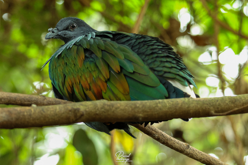 Pigeon de Nicobar (Caloenas nicobarica), également appelé Le Nicobar à camail, est la seule espèce actuelle du genre Caloenas. Il tire son nom du fait qu'il réside principalement dans les îles Nicobar, archipel dans l'est de l'océan Indien.