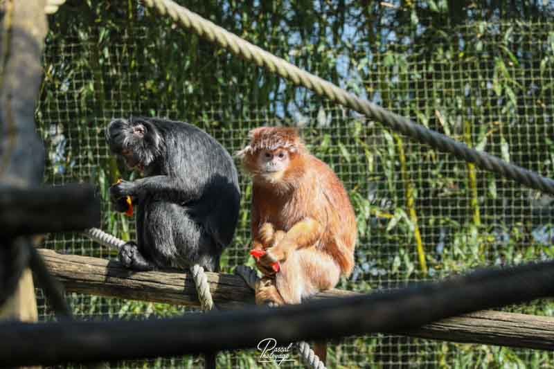 Le Langur de Java ou Semnopithèque noir (Trachypithecus auratus) est une espèce de singe de la famille des Cercopithecidae, originaire de l'île de Java ainsi que de plusieurs îles environnantes en Indonésie. Il est le plus souvent d'un noir brillant avec une teinte brunâtre des pattes, des flancs et des "favoris". Les femelles sont plus pâles, avec une tache blanche jaunâtre autour de la zone pubienne. En Hindi, le mot "langur" signifie "longue queue". Celle-ci lui sert de balancier et lui permet d’effectuer d’incroyables bonds d’arbre en arbre. A la naissance, tous les langurs de Java sont roux. Selon certains spécialistes, cette couleur orangée servirait de signal visuel aux femelles et elle les stimulerait à prendre soin des jeunes. A la naissance, tous les langurs de Java sont roux. Selon certains spécialistes, cette couleur orangée servirait de signal visuel aux femelles et elle les stimulerait à prendre soin des jeunes. Il est le plus souvent d'un noir brillant avec une teinte brunâtre des pattes, des flancs et des "favoris".
